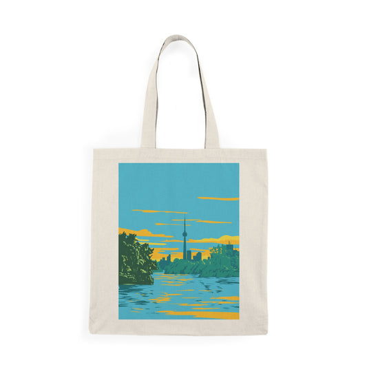 Canvas Tote Bag with CN Tower Toronto Islands View Drawing